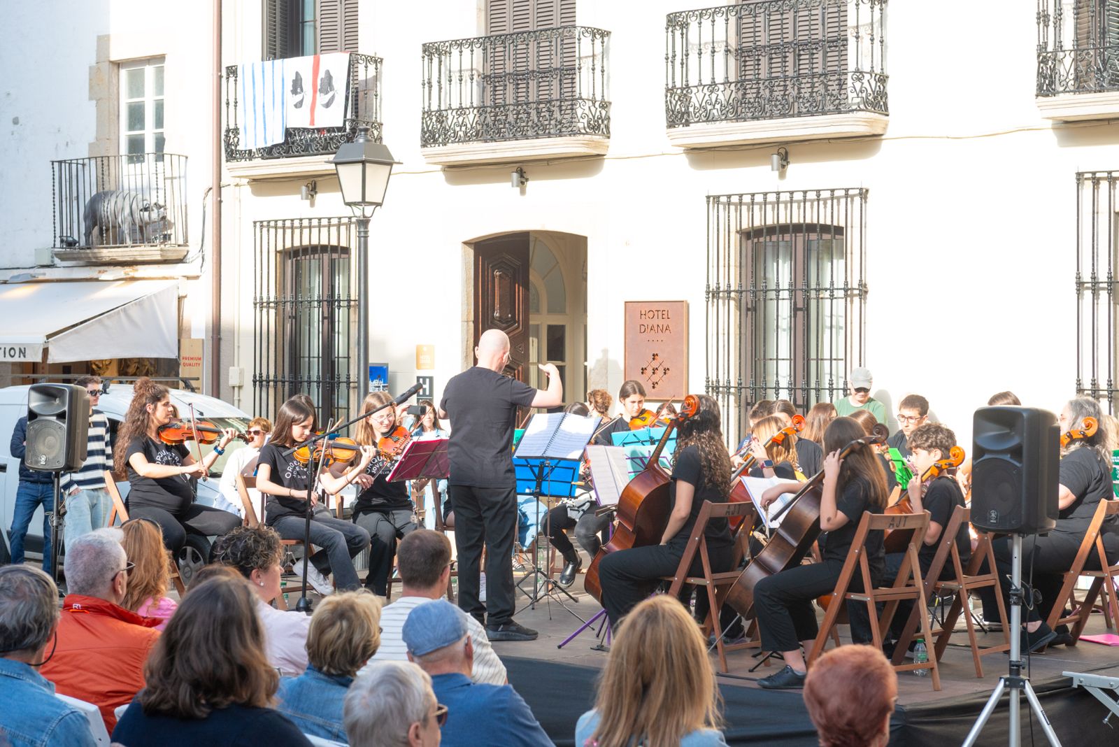 La plaça Espanya ha acollit aquesta tarda el concert de Sant Jordi amb l’Orquestra Jove de la Selva, que ha realitzat la formació de corda i que ha comptat amb la participació de la tossenca Maria Cuatrecasas, que de petita havia formart part de l'Orquestra.