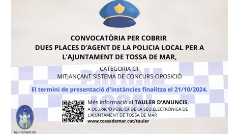 L'Ajuntament ha aprovat les bases i la convocatòria per a cobrir dues places d'agent de la Policia Local, mitjançant el sistema de concurs oposició, més les vacants que es puguin produir abans de l'inici de les proves.