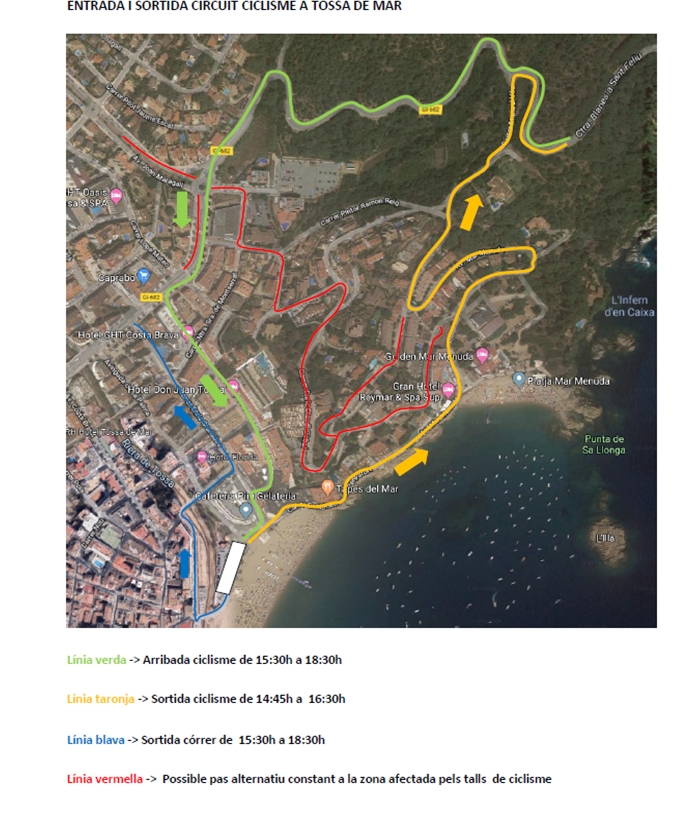 Us adjuntem plànol del recorregut de la prova esportiva per poder consultar els carrers afectats, així com la informació general del TRIATLÓ DE TOSSA DE MAR.